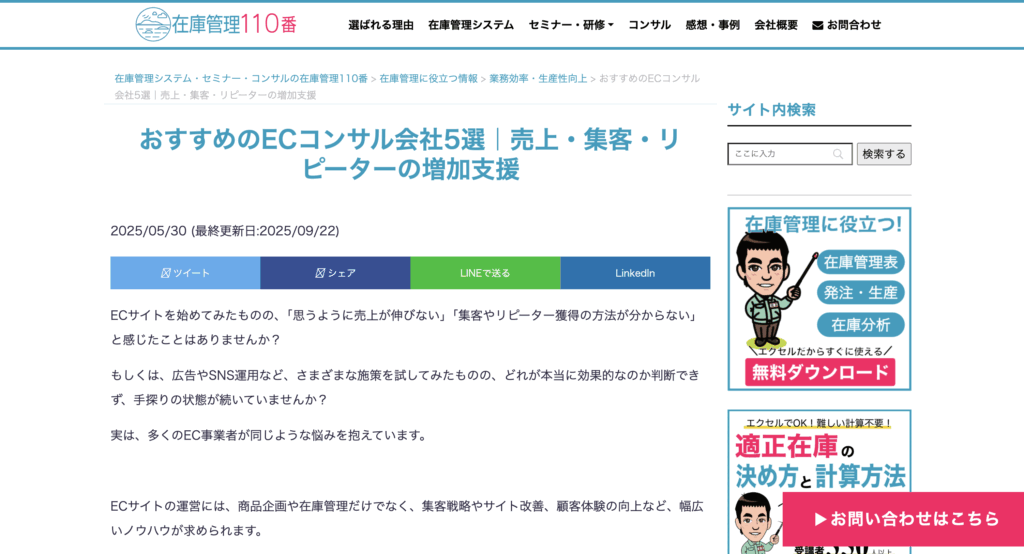 この度、瀬戸内scm株式会社様の在庫管理システム・セミナー・コンサルの在庫管理110番のサイトの記事「おすすめのECコンサル会社5選」にて、おすすめのECコンサルティング会社として、当社OMOKAJIのことをご紹介いただきました。