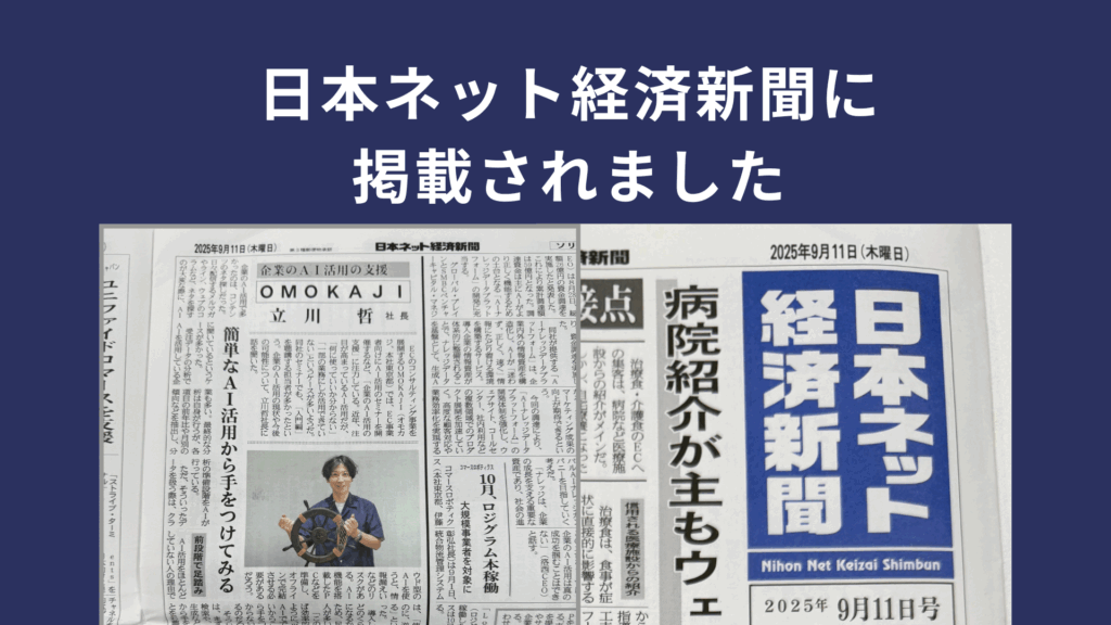 この度2025年9月11日の 日本ネット経済新聞に、「企業のAI活用の支援」として、当社代表立川のインタビュー記事を掲載いただきました。