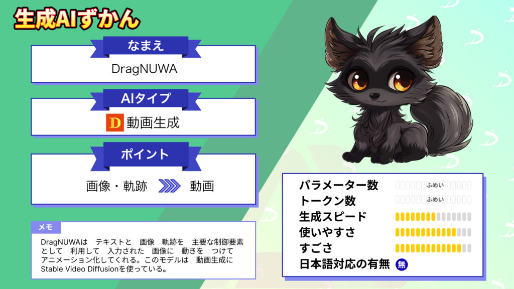 DragNUWAは研究用モデルとして公開されており、現状では利用に料金は発生しません。モデルのソースコードや学習済みウェイトはGitHubおよびHugging Faceで無償公開されており、誰でも自由にダウンロードして試せます。