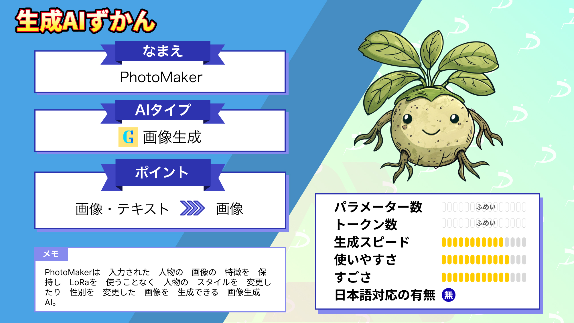 - 顔認識とテキスト情報を統合処理し、高品質な生成を行う独自構造