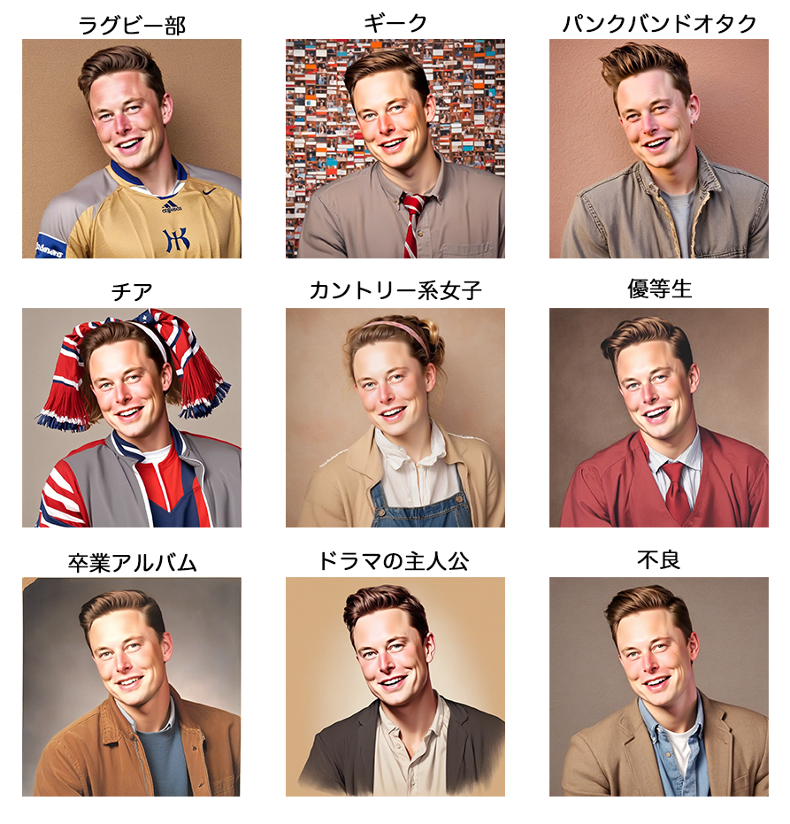 InstantIDで著名人をアメリカの高校生にしてみた