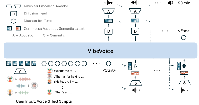 VibeVoice-Realtime-0.5Bは、他のVibeVoice長尺モデルで使用されるセマンティックトークナイザーを採用していません。代わりに、7.5Hzという低フレームレートの音響トークナイザーのみを採用。