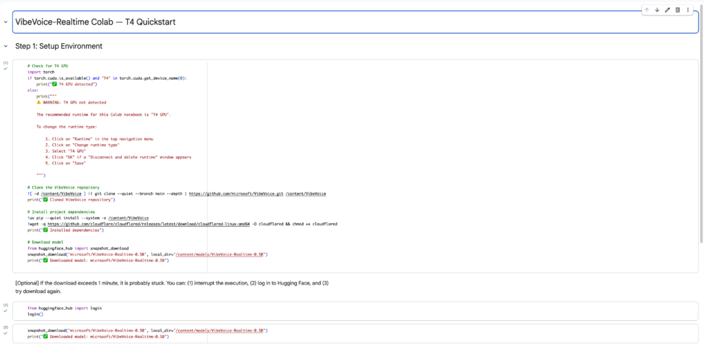 ここからはVibeVoice-Realtime-0.5Bをgoogle colaboratoryで実装しますが、公式でgoogle colaboratoryが用意されているので、そちらを使っていきます。