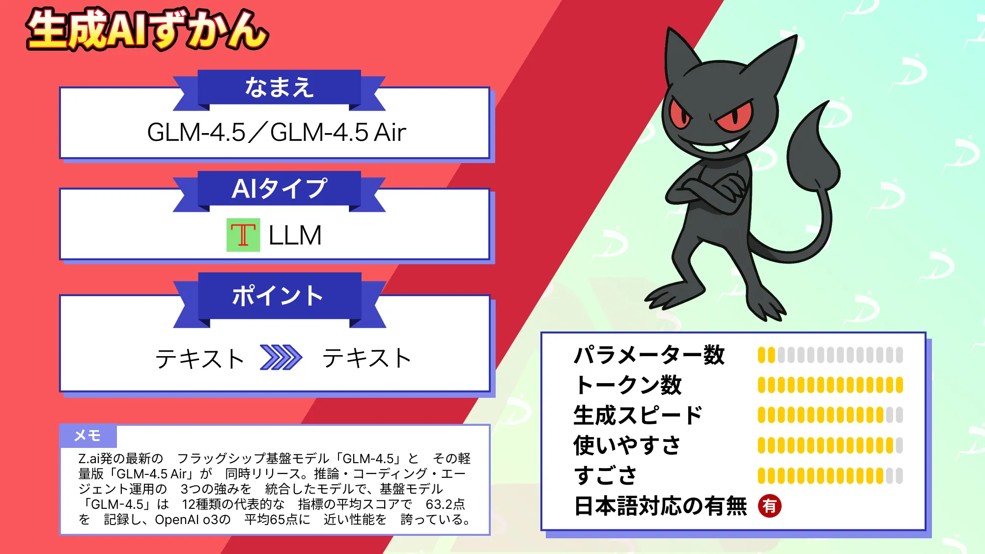 なお、従来モデルのGLM-4.5シリーズについて詳しく知りたい方は、以下の記事も参考にしてみてください。