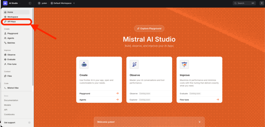 Mistral AI公式のウェブチャットUI「Le Chat」や、開発者向けコンソール「AI Studio」では、ユーザー登録を行うことでブラウザ上からモデルにアクセスできます。