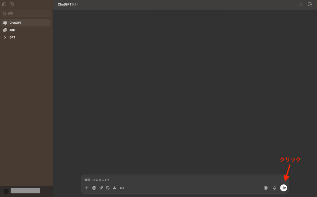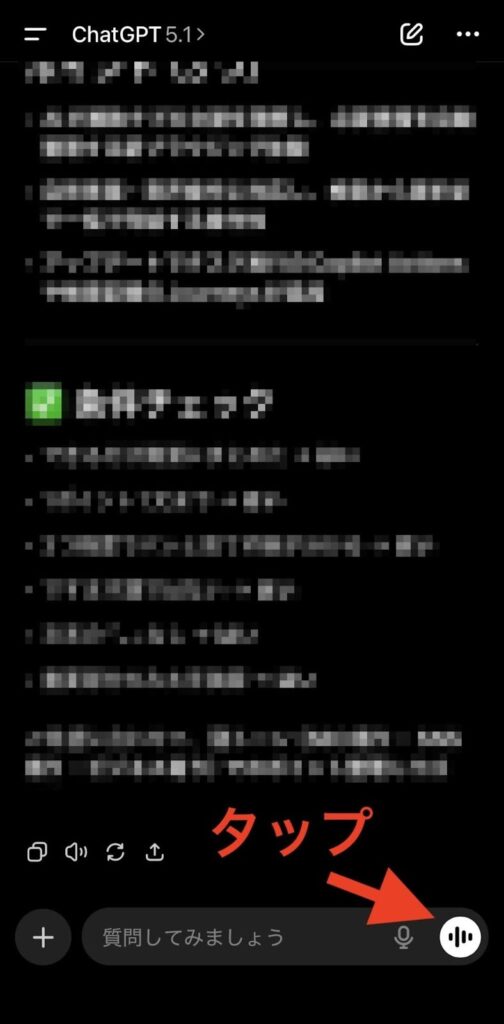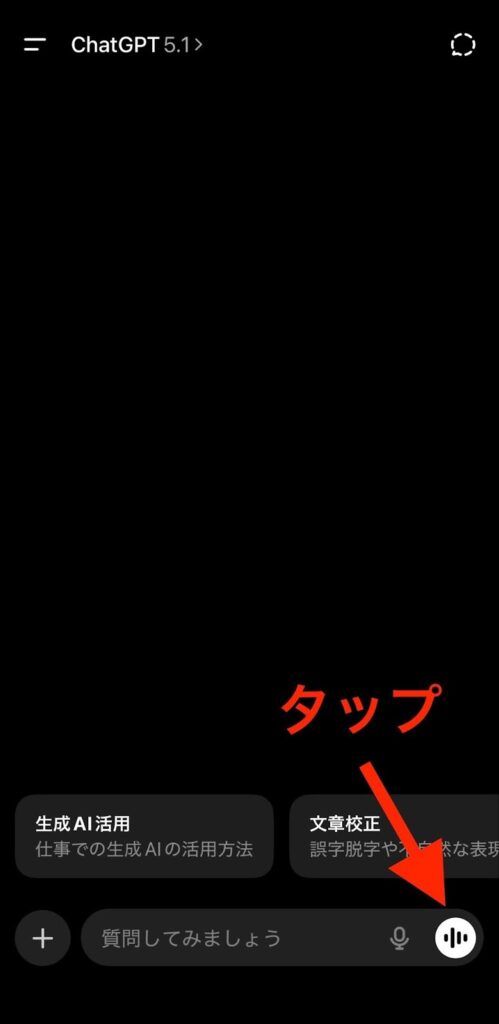 使い方は簡単でChatGPTのホーム画面にある右下の音声モードアイコンをタップします。