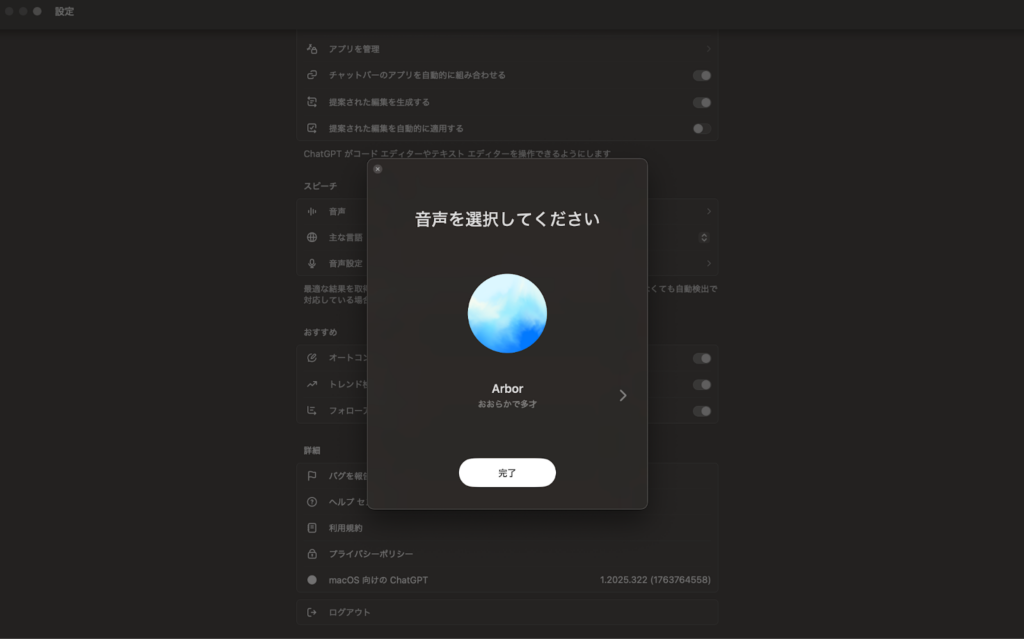 ChatGPTの音声会話機能 リリース当時は、モバイルアプリからしか利用できませんでしたが2025年11月現在では様々なプラットフォームから利用できます。