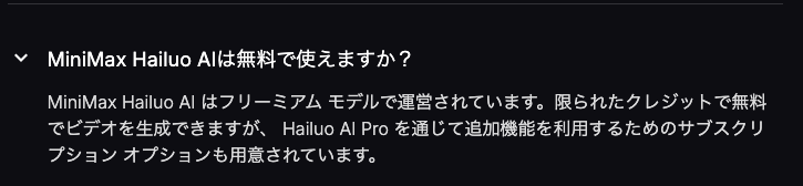 MiniMax AIは2024年10月時点では、すべての機能が無料で提供されていました。