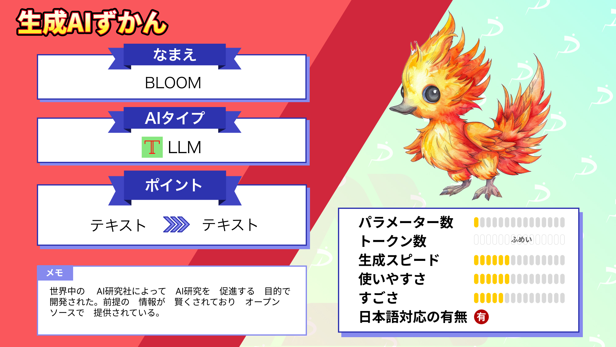 扱えるモデルは、Llama2(70B)やFalcon(180B)などのパラメータ数が特級クラスのものばかり。誰でも、Google Colabさえあればこれらのモデルを動かせます。