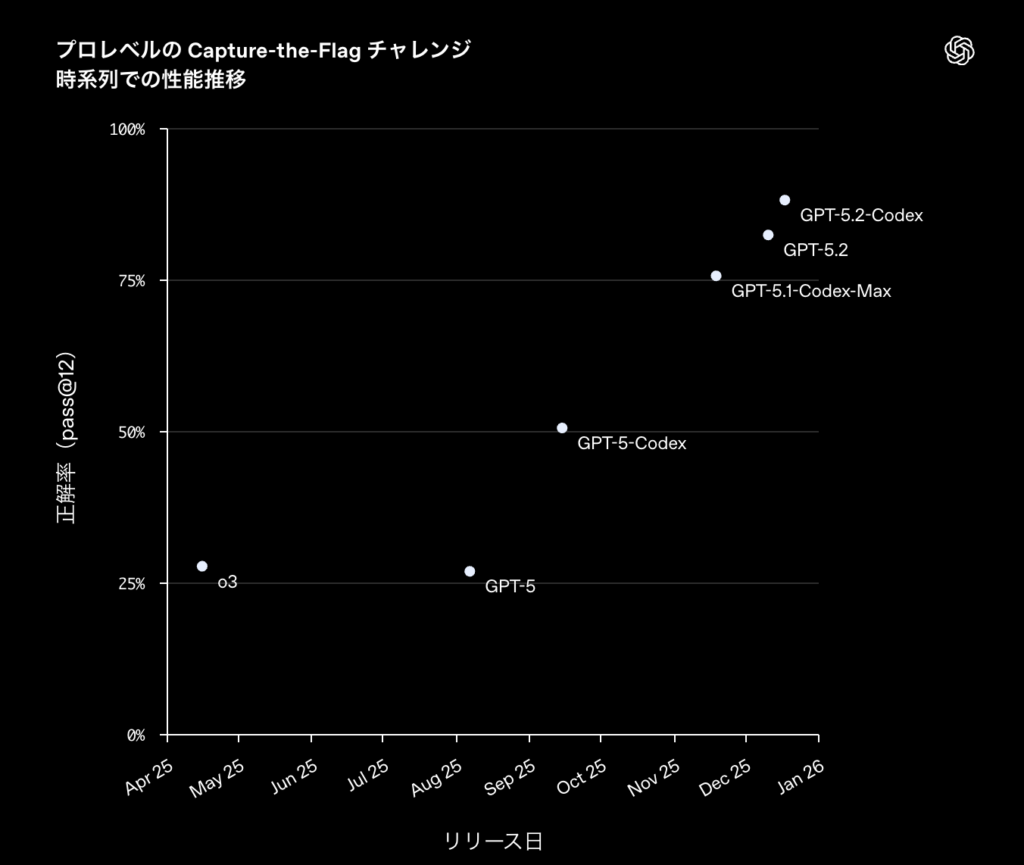 GPT-5.2-Codexは、防御的サイバーセキュリティ用途を強く意識。脆弱性探索や検証といった工程でエージェント的に反復作業を行える点が特徴です。ゼロショットでは見つけにくい問題でも、専門家のガイダンスを取り入れた反復によって精度を高める流れが示されています。