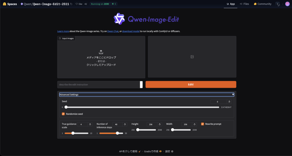 それでは、実際にQwen-Image-Edit-2511をデモサイトで使ってみましょう。