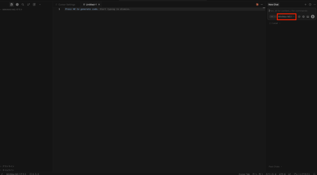 これでChat画面でMiniMax-M2.1を使うことができるようになりました。
