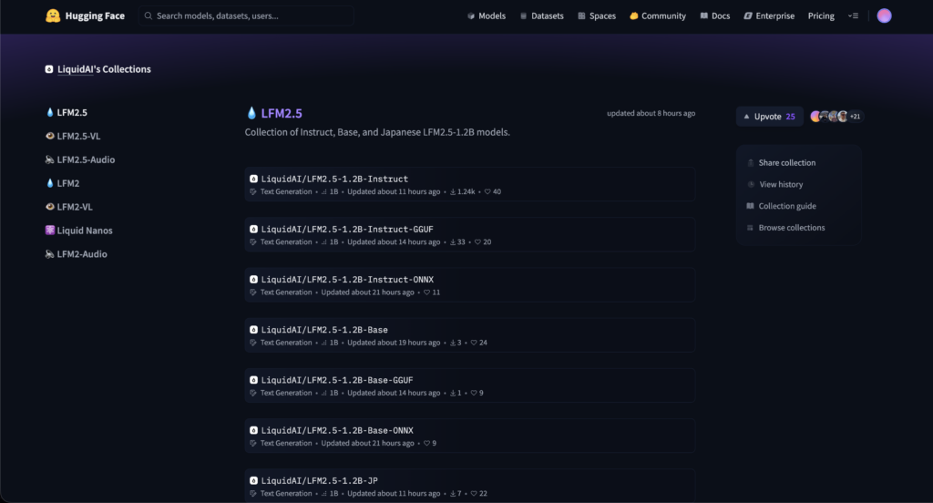 LFM2.5は、Liquid AIが開発した小型高効率のAIモデル群です。