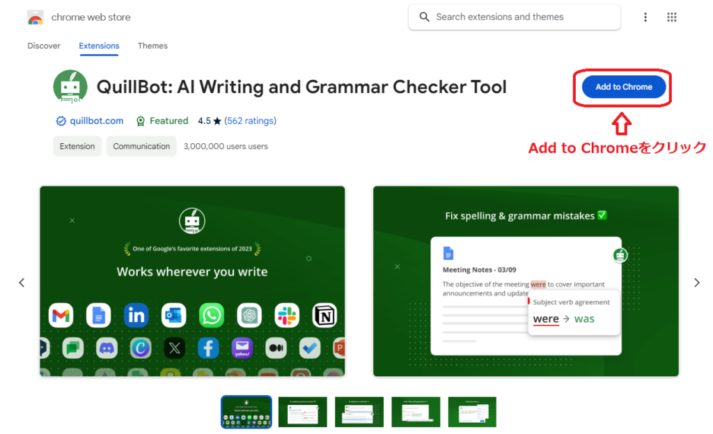 QuillBot AIの拡張機能を利用すれば、導入したアプリケーション上での文章やSNSなどのオンライン上の情報の要約はもちろん、オンライン上で入力した文章の文法チェックや言い換えも即時に行うことが可能です。普段利用するアプリケーションからシームレスに利用できる点もQuillBot AIの特徴の一つです。