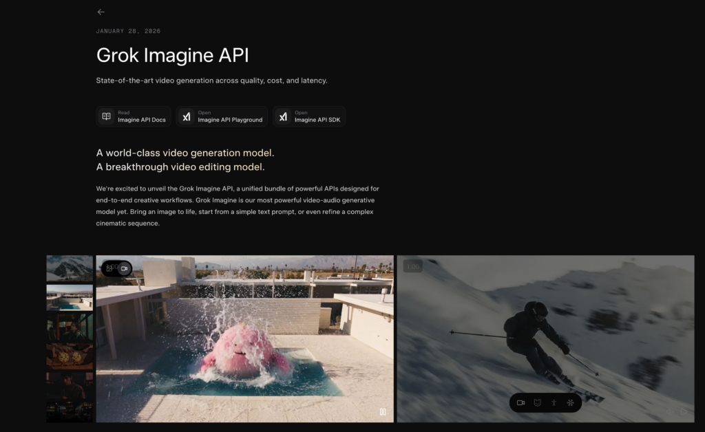 2026年1月、xAIから新たな動画生成API「Grok Imagine API」が公開されました。