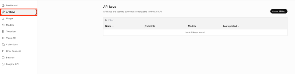 実装をする前にxAIのAPIキーが必要になるので取得をしておきましょう。