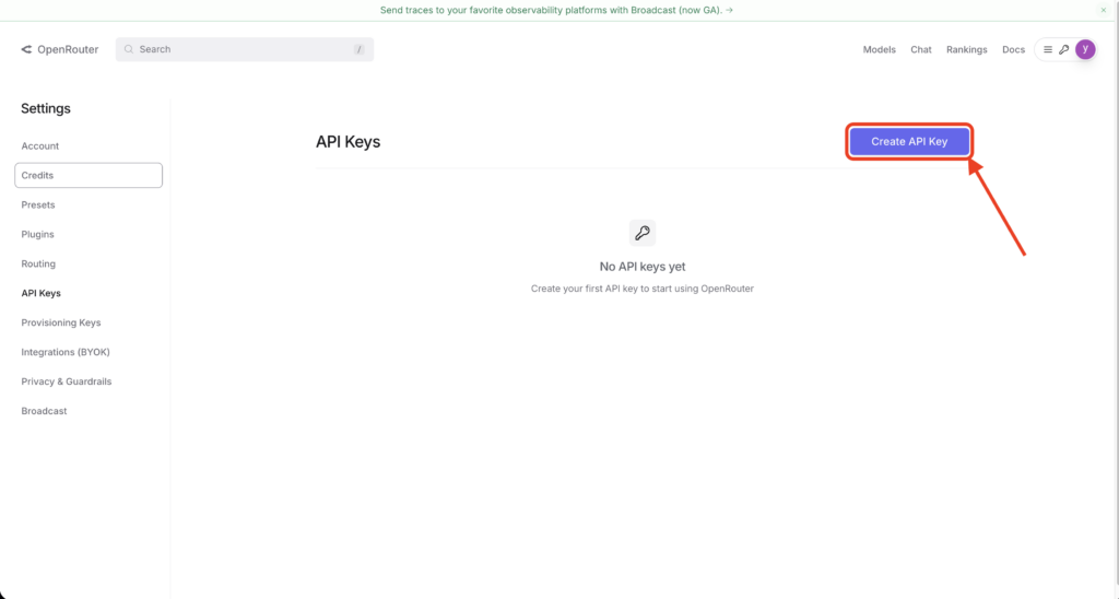 なお、上記のAPIキーはOpenRouterの設定ページから取得できます。