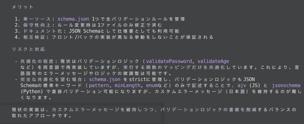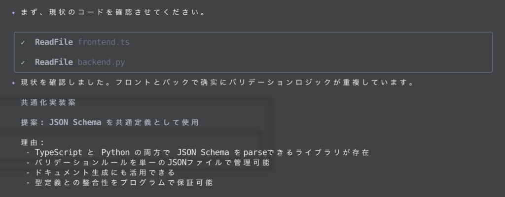 2.2ファイル構成は維持してよいが、共通ロジックは単一ソースになるようにすること(例: JSON Schema、OpenAPI、共有ルール定義など)
