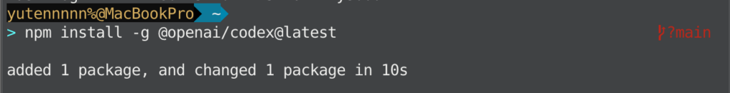 まだCodex CLIをインストールしていない場合、またはバージョンが古い場合は、以下のコマンドで最新版(v0.101.0以降)をインストールします。