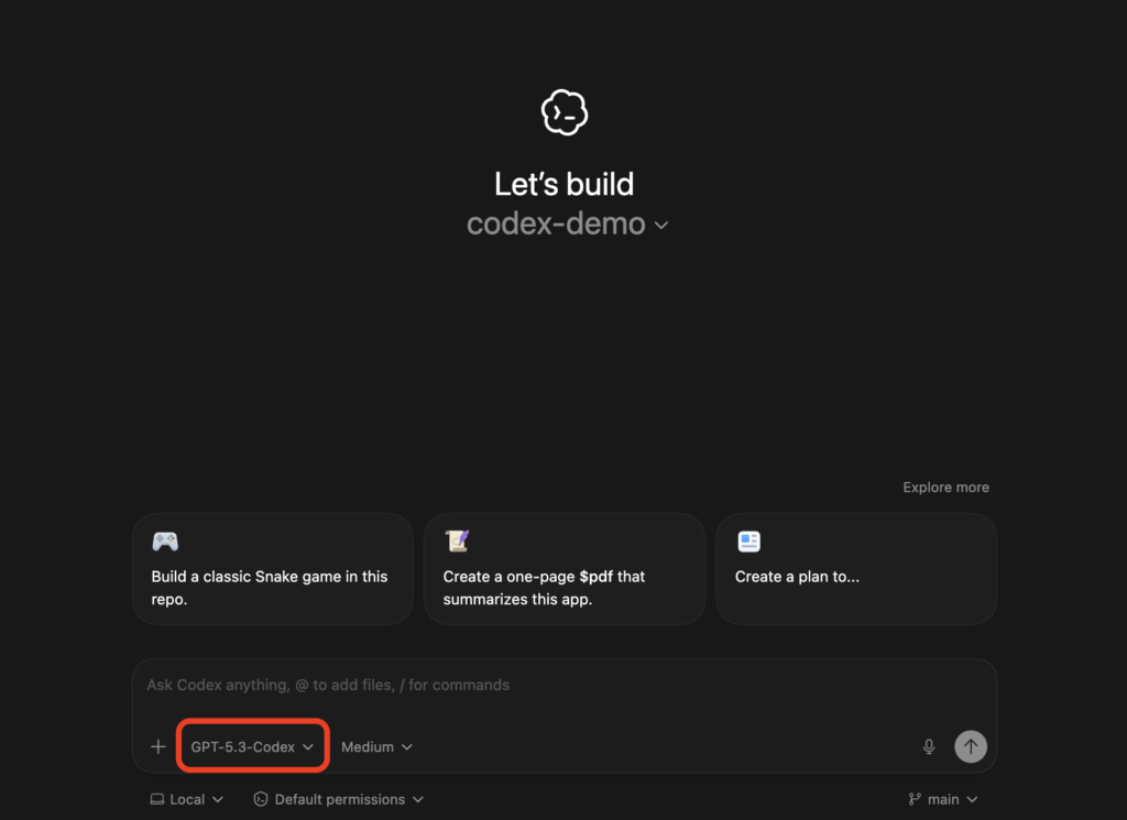 選択後は、コンポーザーに指示を入力するだけでCodex-Sparkが応答します。
