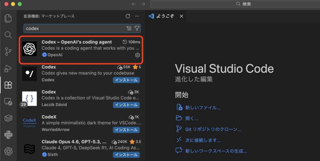VS Codeの拡張機能メニューからCodex拡張機能を検索し、最新版にアップデートしてください。