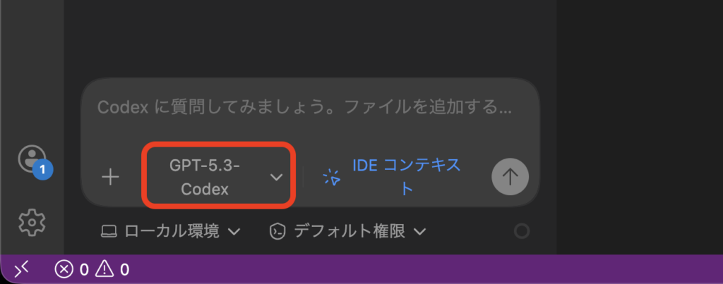 すでにCodexのセッションを開いている場合は、セッション内で /model コマンドを実行してモデルを切り替えることもできます。