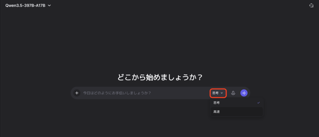 それでは実際に、Qwen3.5-397B-A17Bを公式Webチャット上で使ってみましょう。
