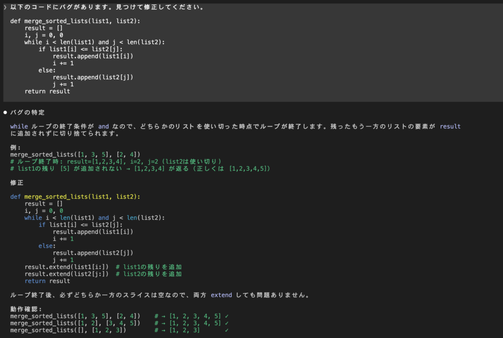 ループ終了後に、残りの要素を追加する処理が欠落していることを正確に指摘してくれました。
