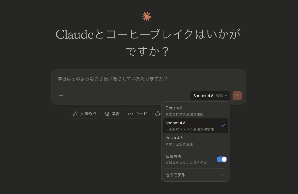 Sonnet 4.6は2026年2月18日現在、FreeプランおよびProプランのデフォルトモデルとして設定されています。MaxプランではOpus 4.6がデフォルトになっていますので、モデル選択プルダウンから選択することで利用できます。