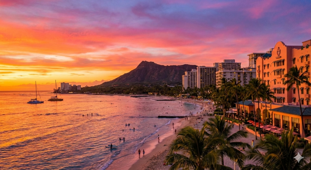 次に、Nano Banana Proで生成した夕焼けのワイキキビーチの風景写真をアップロードし、「この写真の雰囲気に合う曲を作って」と入力しました。