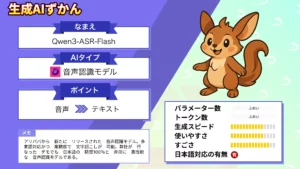 なお、同じくQwenシリーズであるQwen3-ASRは音声認識に特化したモデルです。くわしく知りたい方は、以下の記事をご覧ください。