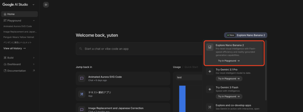 )Google AI Studioから使う(GUIで試したい開発者向け)