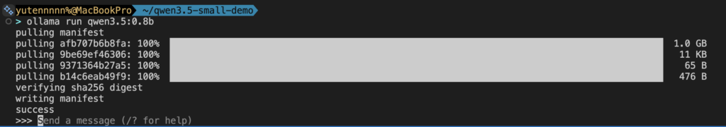 それでは実際に、Ollama経由でQwen 3.5 Small Model Seriesの0.8Bモデルを使ってみましょう。最小モデルでどの程度のタスクをこなすことができるのか確認していきます。