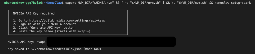curl -fsSL https://nvidia.com/nemoclaw.sh | bash初期セットアップを行う
