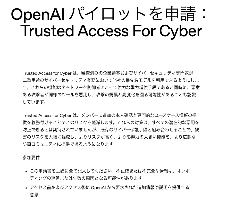 参考:https://openai.com/ja-JP/form/enterprise-trusted-access-for-cyber/
