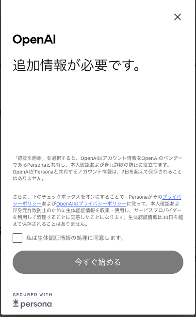 最初に認証を始めるための同意画面が表示されるので、同意をします。