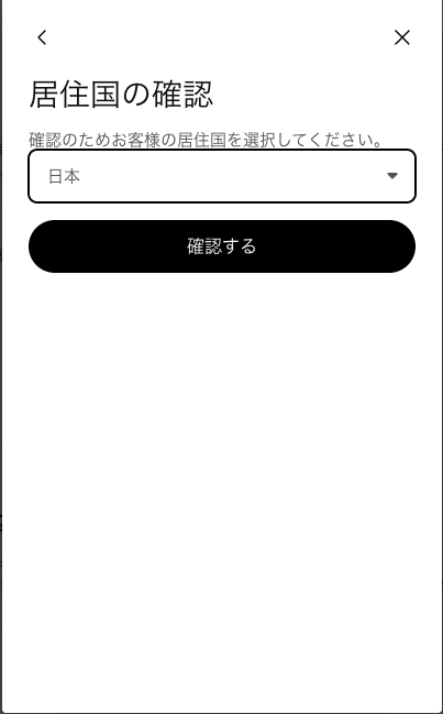 続いて居住国の確認です。日本に住んでいる場合は、日本を選択して確認するをクリック。