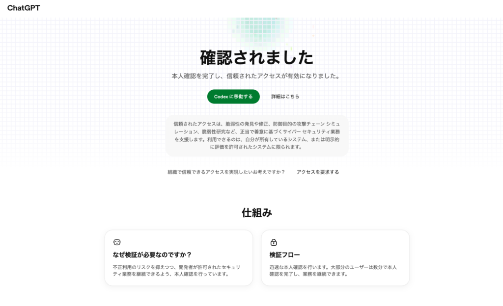 しかし、TACを通じてGPT-5.4-Cyberにアクセスすることで、防御業務・セキュリティ教育・脆弱性調査がよりスムーズに進められます。