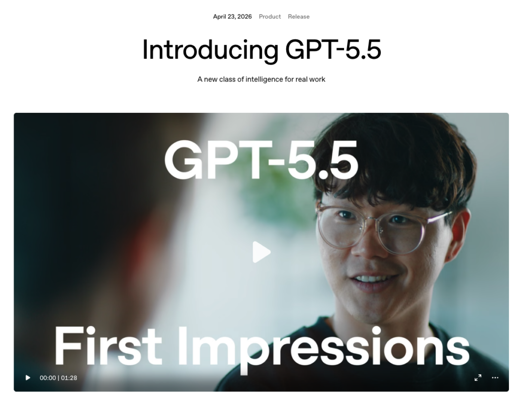 GPT-5.5は、OpenAIが2026年4月に公開した最新の大規模言語モデルです。