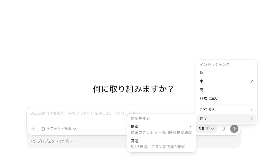 Codex Fastモード上記と同じ通常の2.5倍のコストで1.5倍の速度