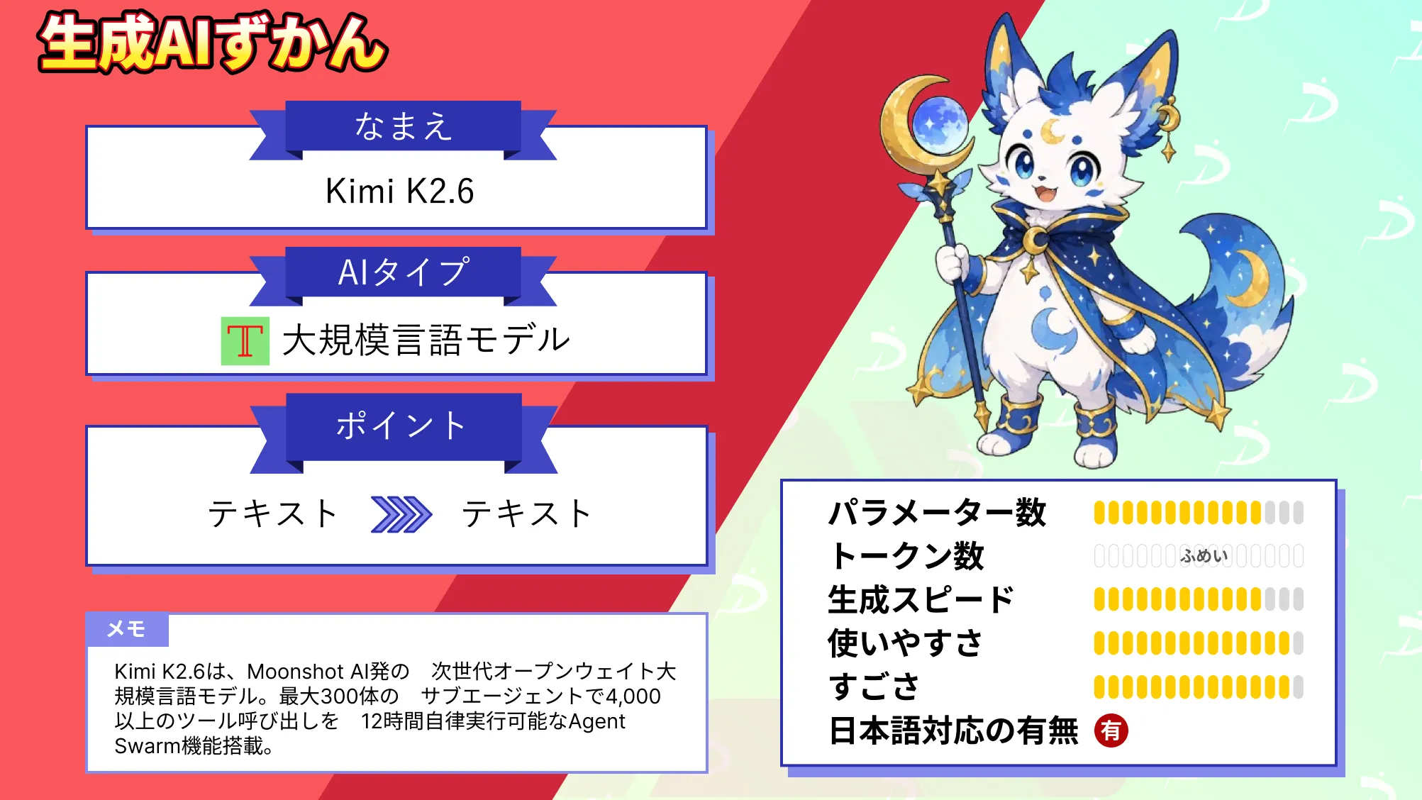 300体のエージェント群で12時間自律稼働する次世代オープンウェイトLLMであるKimi K2.6について、詳しく知りたい方は以下の記事も参考にしてみてください。